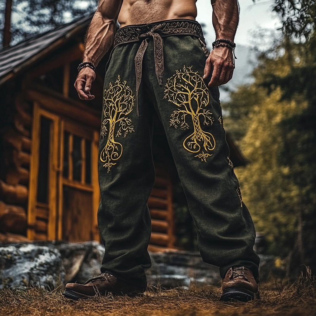 Men's Celtic Knot Tree Of Life Embroidered Wide Leg Pants