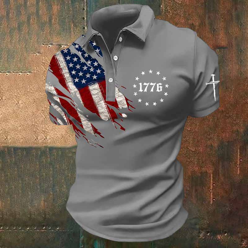 Men's Independence Day Faith Cross Printed Casual Polo Shirt