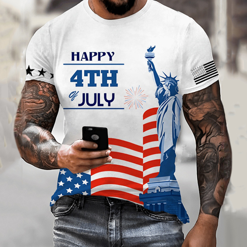 Men's Independence Day Statue Of Liberty Print Short Sleeve T-shirt