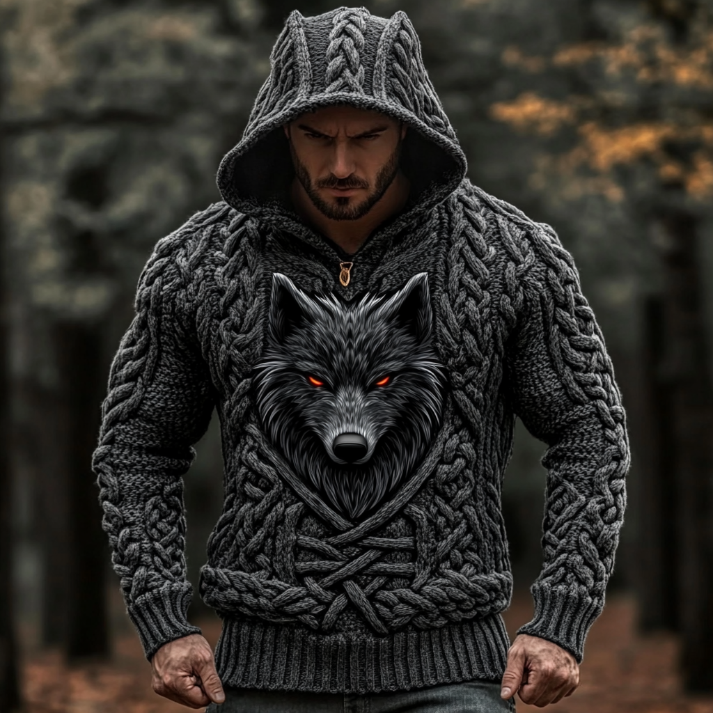 Men's Vintage Viking Wolf Celtic Chunky Cozy Hooded Sweater