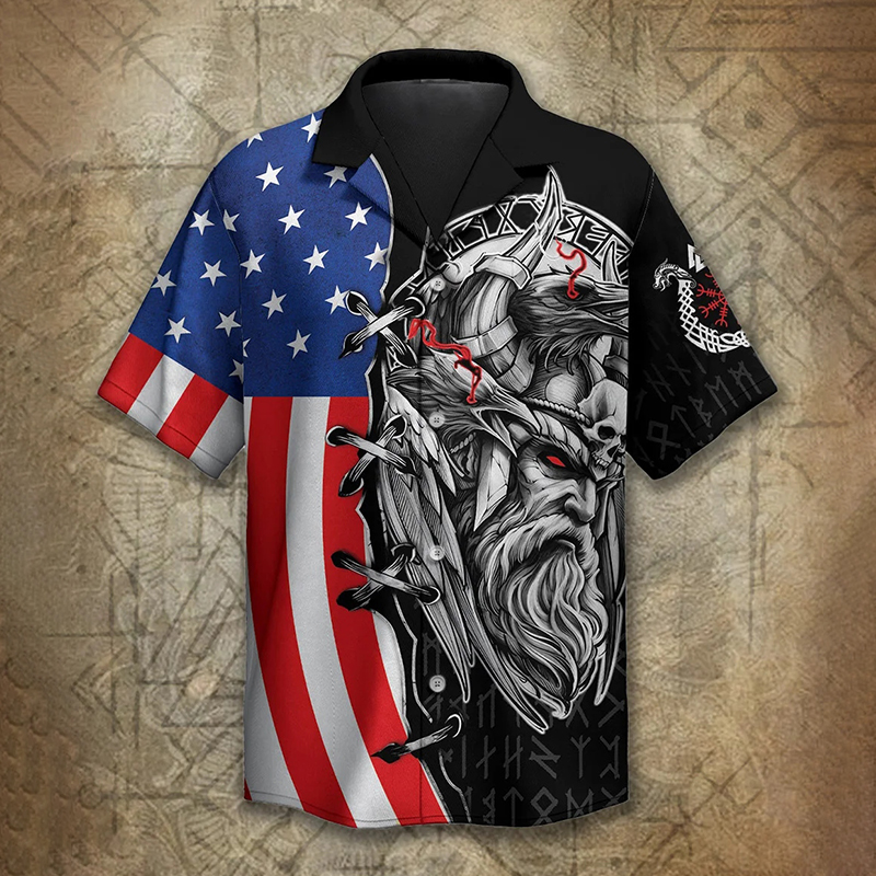 Viking American Patriot Norse Gods Totem Bear Spirit Power Heritage Hawaiian Shirt