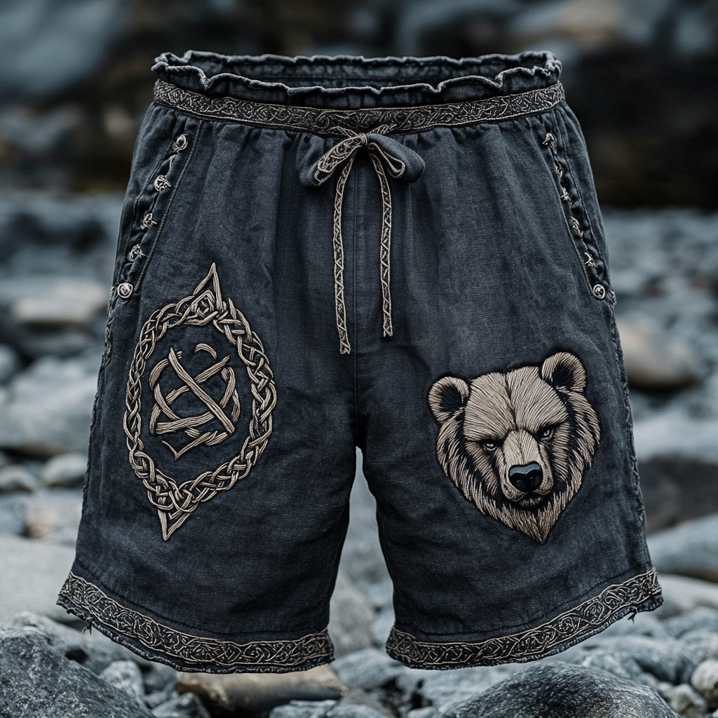 Vintage Nordic Viking Mythology Celtic Knot Bear Head Shorts