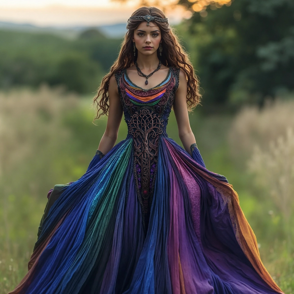 Women's Viking Celtic Knot Gradient Pattern Linen Round Neck Maxi Dress